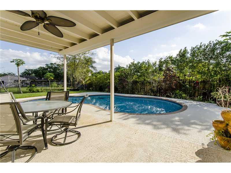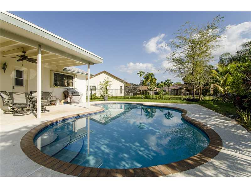 Desirable Flamingo Gardens West in Cooper City. Popular Aspen Model with family room, pool, oversized 10509 sq ft fenced yard on a private quiet street. This property has split bedrooms, eat in kitchen, aluminum roof, shutters, tile throughout entire hous e, kitchen is not original, 5 fans Neighborhood park with tennis courts, easy access to shopping, schools, highways. A must see home!