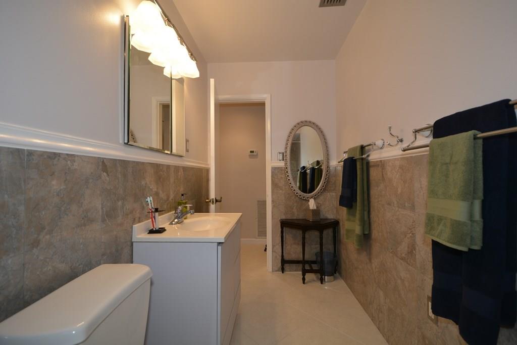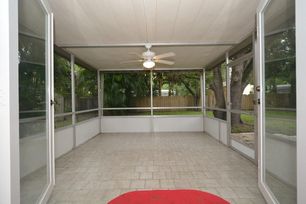 Move in ready, Sunny 3 bed 2 bath home on one of the prettiest streets in sought after Shady Banks. Porcelain tile floors throughout, 2 double French doors(impact) light filled living dining & kitchen areas. Open eat in kitchen w/breakfast bar Gorgeous new baths w/ marble tile-rain head shower- deep tub .Big screened porch, inside laundry room/pantry off the kitchen, 1 car garage & large fenced yard. Some impact windows & shutters. Open front porch, freshly painted inside &out. Best location, a must see!!