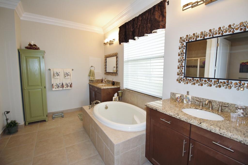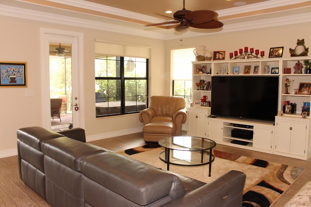 WOW. THIS HOME HAS IT ALL. UPON ENTERING THROUGH THE LEADED GLASS DOOR SEE THE DECORATIVE WOODWORK & CROWN MOLDING. ALL UPGRADED KITCHEN FEATURES QUARTZ COUNTERTOPS, DOUBLE OVEN, GAS RANGE WITH BUMP OUT, UPGRADED PANTRY DOORS, COUNTER DEPTH REFRIGERATOR, GLASS DOORS ON CABINETS & PULL-0UT DRAWERS & UPPER & LOWER LIGHTS, LOVELY BACKSPLASH. ALL HURRICANE IMPACT WINDOWS, CABINETS IN THE LAUNDRY ROOM, BEAUTIFUL UPGRADED PROCELAIN FLOORS AND GRANITE COUNTERTOPS IN THE BATHROOMS. GREAT WINDOW TREATMENTS. STORAGE UNIT IN GARAGE. BEAUTIFUL EXTENDED LANAI OVERLOOKING THE HUGE LAKE GREAT FOR RELAXING OR ENTERTAINING AND LOVELY METAL FENCE TO KEEP YOUR CHILDREN OR PETS IN A SECURE, SAFE AREA. ENJOY THE 5.1 SURROUND SOUND STERIO SYSTEM. ALL THIS AND THE HOUSE SITS ON A UPGRADED ELEVATION AND LO