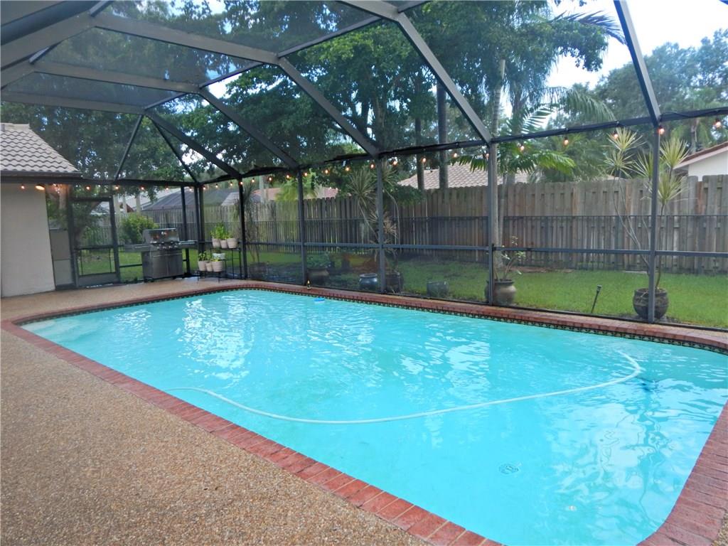 Cypress Glen at it's finest. Upgraded 4 bed 2.5 baths pool home in the heart of Coral Springs. Fabulous updated modern solid wood kitchen with high end granite and GE Profile SS appliances + wine cooler. Eat in kitchen, hardwood floors in all the bedrooms. Wood Plantation shutters throughout. 24" tile laid on diagonal. Vaulted ceilings. Screened in pool and large covered patio. Fenced yard. Accordion shutters. 2 car garage and paved driveway. This one will not last, make it yours today!