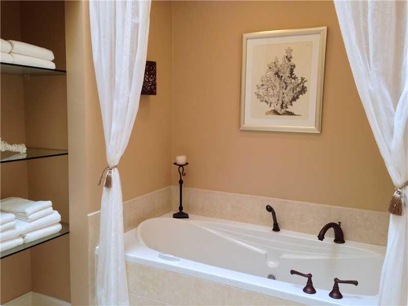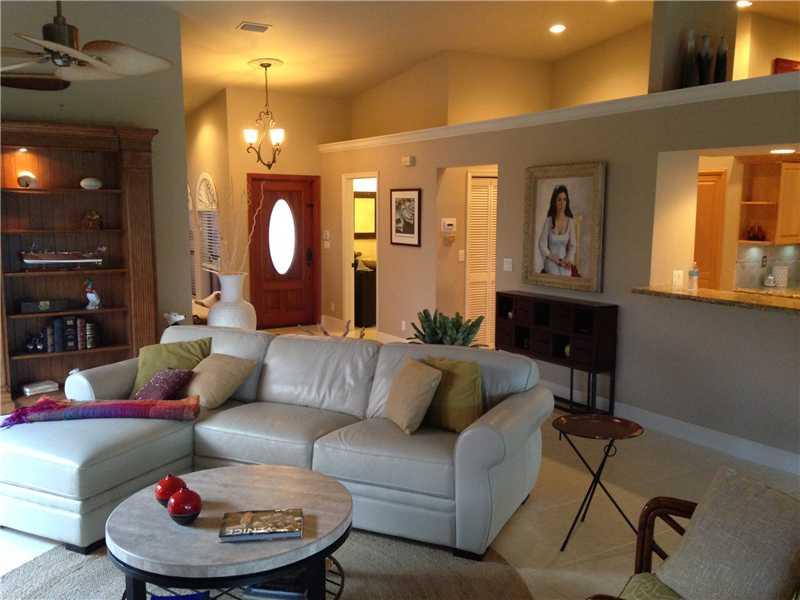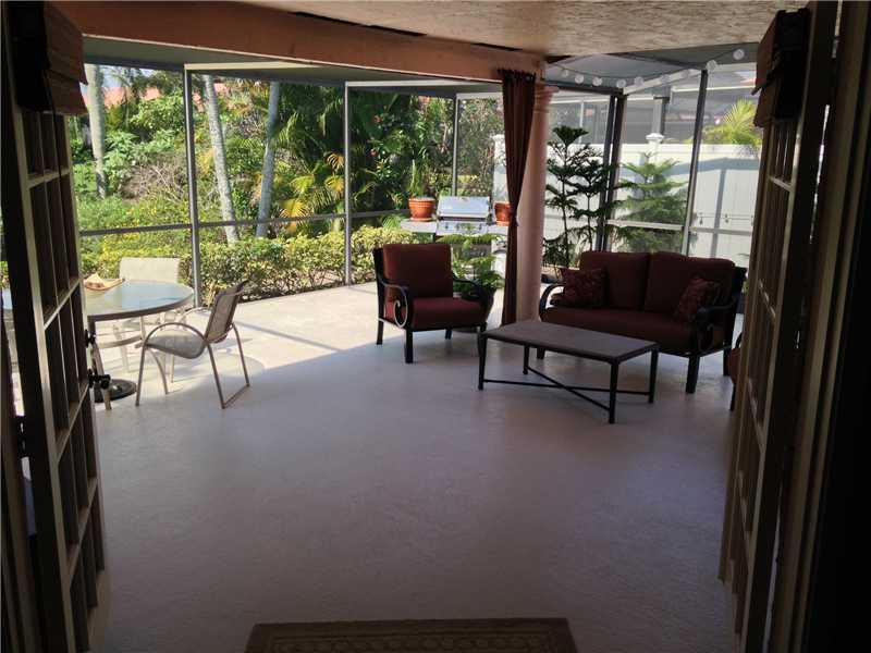 Beautifully maintained and updated 3 bedroom 2.5 baths 2 car garage home with open floor plan, designer kitchen with granite counters, baths and fixtures throughout. Large covered/screened patio overlooking garden plus another patio (uncovered) with foun tain. Split bedroom plan. Master bedroom has walk in closet. Master bath has double vanity, shower and air jet tub. Roof redone in 2006 & A/C 2008. No hurricane windows but hurricane shutters.