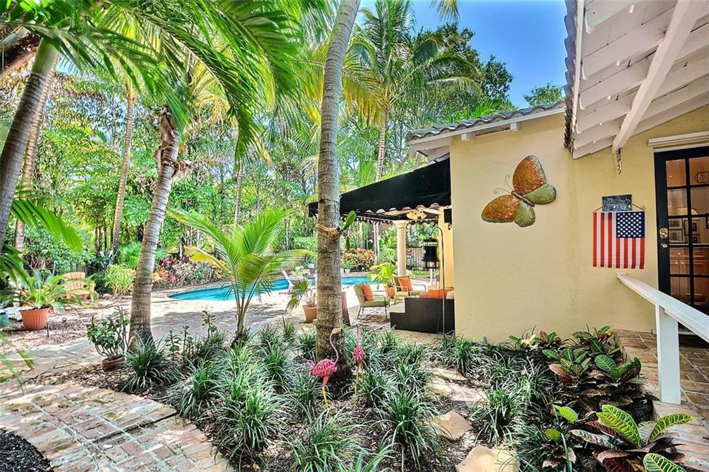 Highly desirable double lot in East Fort Lauderdale's subdivision of Rio Vista. Outstanding curb appeal & large tropical backyard boasts a free form pool, patio area & covered loggia framed by mature tropical landscaping. The charming & bright open floor plan is ideal for today's lifestyle. Formal living & dining rooms, large kitchen with a center island ideal for entertaining opens to the family room. Fully equipped 1BR/1FBA Guest house with kitchenette & great room. Sq ft from BCPA believed accurate.