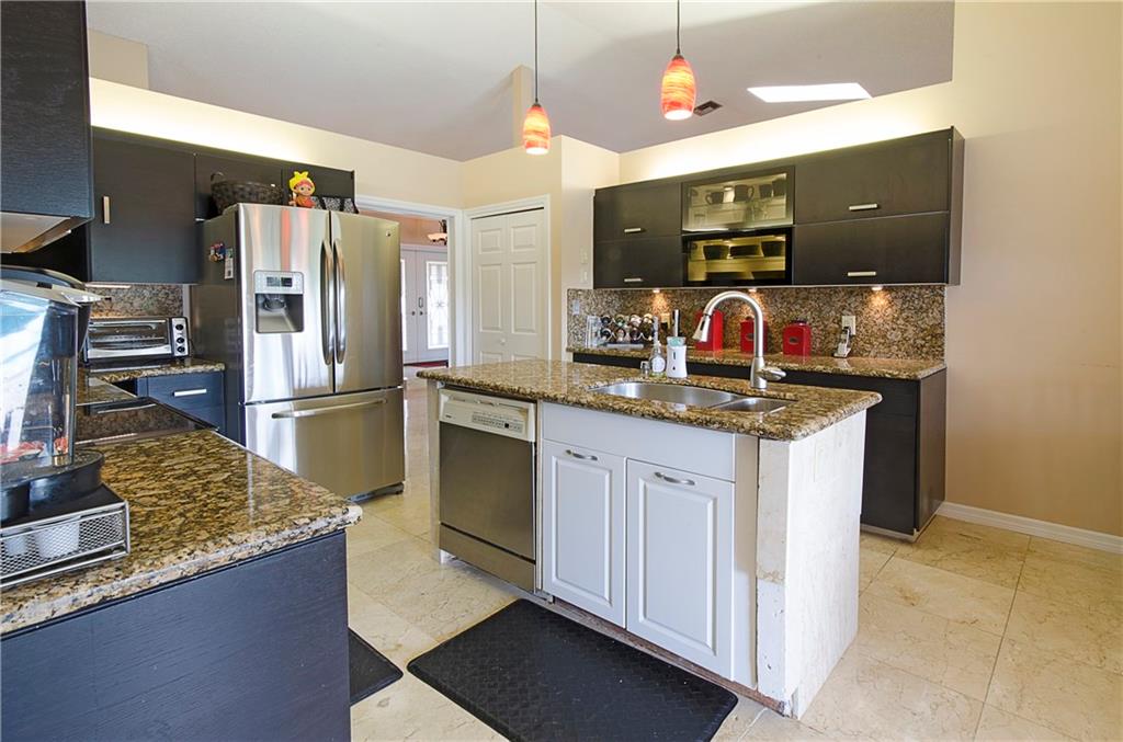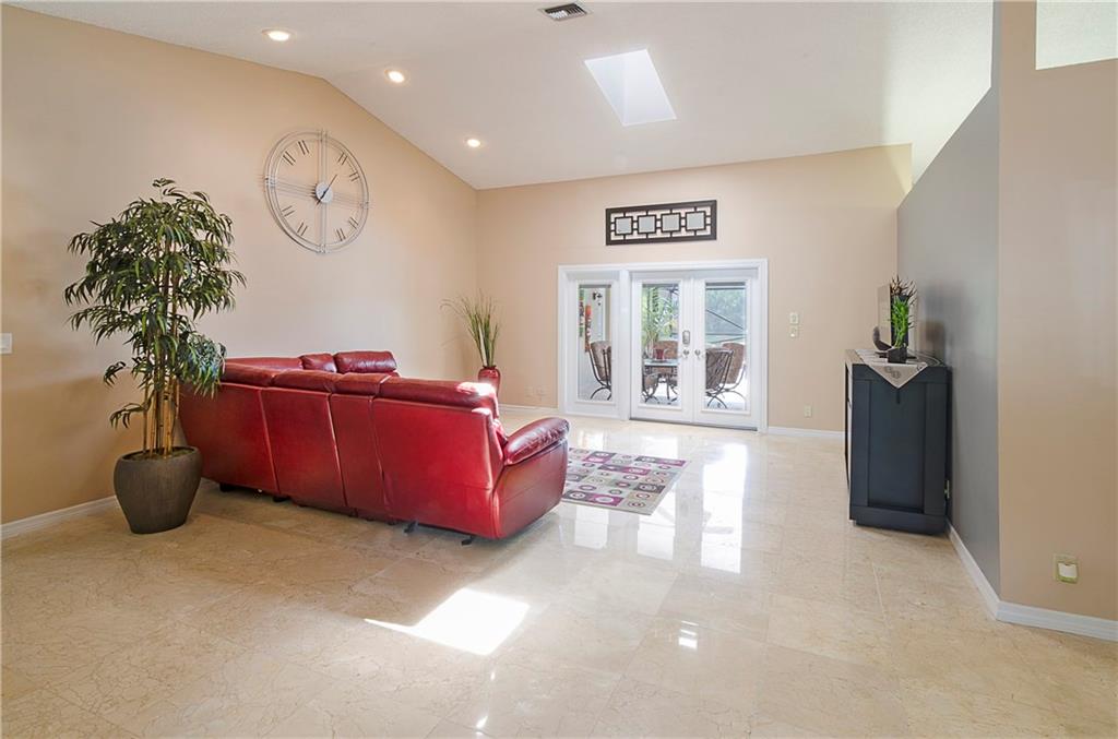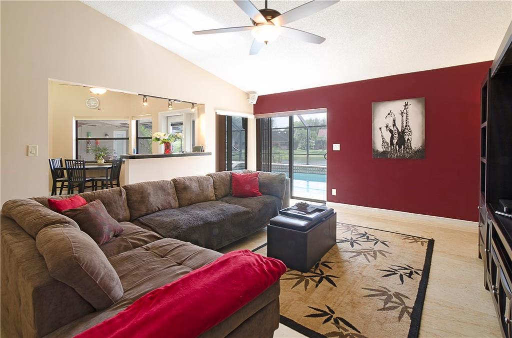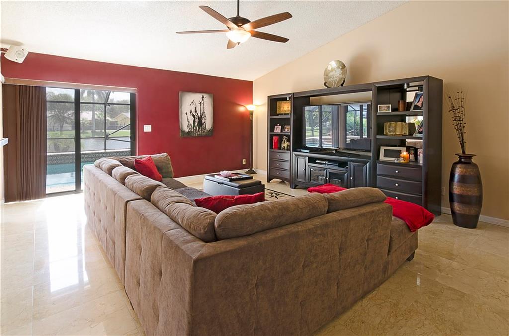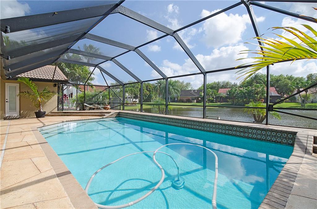 THIS HOME HAS IT ALL!! LAKE & POOL!AMAZING open floor plan! Hurricane impact windows & French doors throughout, completely remodeled kitchen with gorgeous dark wood cabinets & stainless steel appliances, polished marble floors, garage storage system & sea led floors, dome screened-in heated salt water pool, tankless water heater! Completely upgraded bathrooms with frameless shower doors, new toilets, marble tops, glass bowl sinks & more!! New light fixtures & fans.. TURNKEY!! Master closet is 10x10.