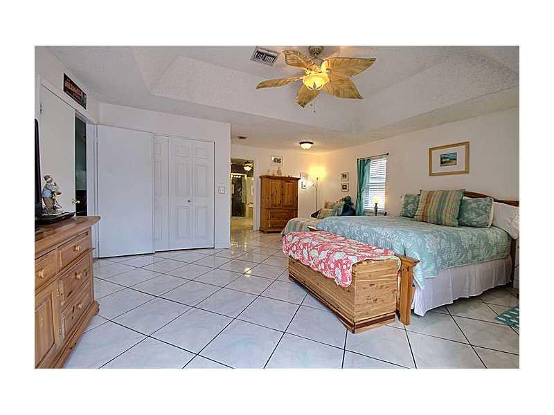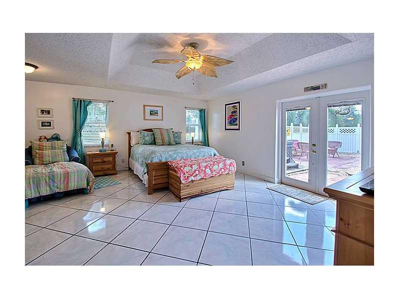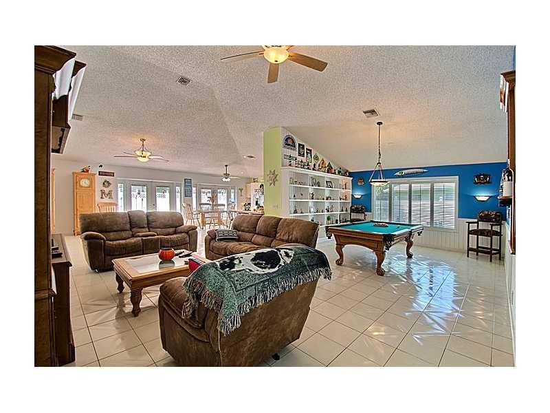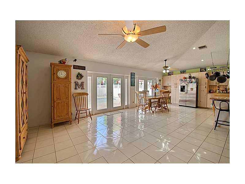Spacious 3 bedroom 2 bathroom home in Parkwood Isles on large corner lot with tropical landscaping and water views. Open floorplan with large living, dining and kitchen area. Large master suite with walk in closet and french doors overlooking the pool. Sa lt water pool installed in 2005 with privacy fence and large side yards. Backyard has newly installed dock with water views. Newer roof, AC and tile throughout. Move-in Ready!