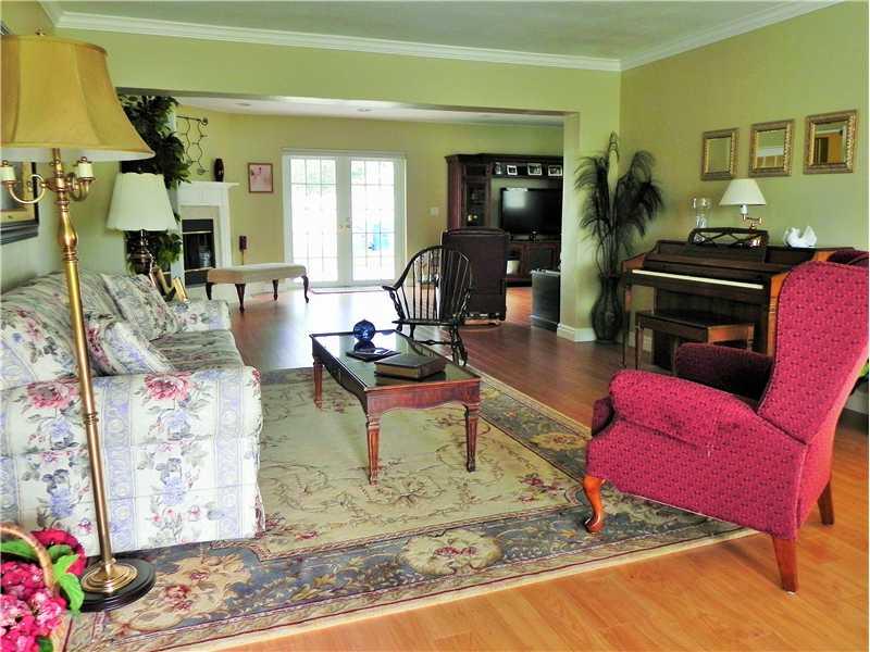 VA/FHA WELCOME! For the growing family - big and beautiful 1826 sf 2/2 with open inviting layout and bonus room. Remodeled kitchen opens to formal dining room on one side and family room on the other with working fireplace. Laminate and crown molding th roughout living areas, carpeted bedrooms. Large remodeled master bath has double sinks, Jacuzzi and separate shower. Two sets of French doors lead to family room and back yard with patio area. Separate laundry room. Bonus room in garage with A/C.