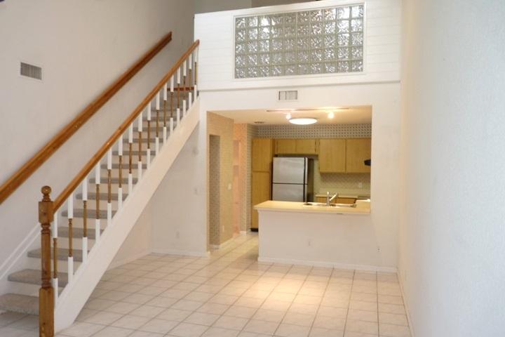 Great starter home in a private location with no neighbors behind. 2 story townhome with master bedroom downstairs and a loft upstairs. All tiled throughout living areas and carpeted bedroom. Kitchen features updated cabinetry and includes all appliances. Master bedroom has private bathroom, walk in closet and sliding glass doors to the fenced/screened patio. Upstairs is the loft area with wood floors, bedroom 2 and a full bathroom which has updated cabinetry. Good location is close to schools and shopping. No lease for the 1st 2years of ownership. Easy showings anytime! This is a Fannie Mae HomePath property.