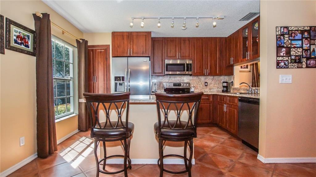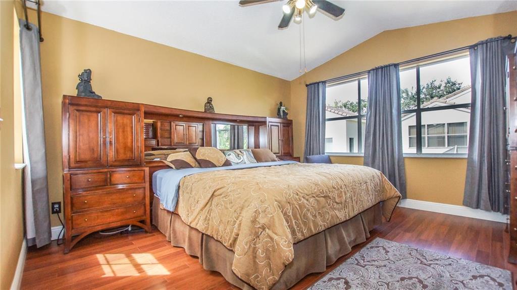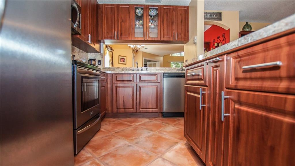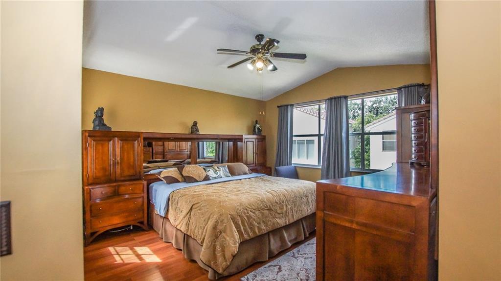 This Dream Home is a 4-2.5 and 1 car garage w/ customized cabinets & shelving. Living room w/cathedral ceilings Plus hurricane shatter proof tint on triple sliding glass doors & windows. Kitchen is remodeled. Brand new stainless steel appliances. Laundry room. Washer & dryer are 1 Y.O. Tile & wood panel floors. Master bedroom w/ customized walkin closet. Newer roof. Hurricane shutters. Fenced backyard. ADT motion & breakin alarm sys. A & B Schools. Community pool. Original Owners are motivated to sell!
