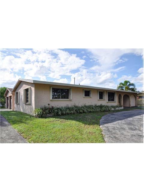 Desirable Plantation property just steps away from City of Plantation Woods water park, tennis courts, library and museum. This home features a circular driveway with free standing garage (custom oversized) and 1569 sq ft of additional side driveway and w ork area. A brand new roof in 2014, remodeled Master bath, oversized walk-in closet, accordion shutters, inside office and inside laundry room, and skylight. Please see pictures & virtual tour!