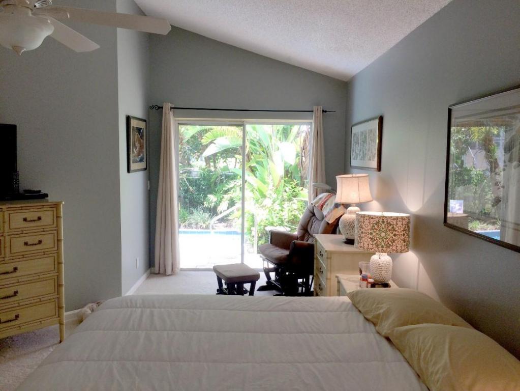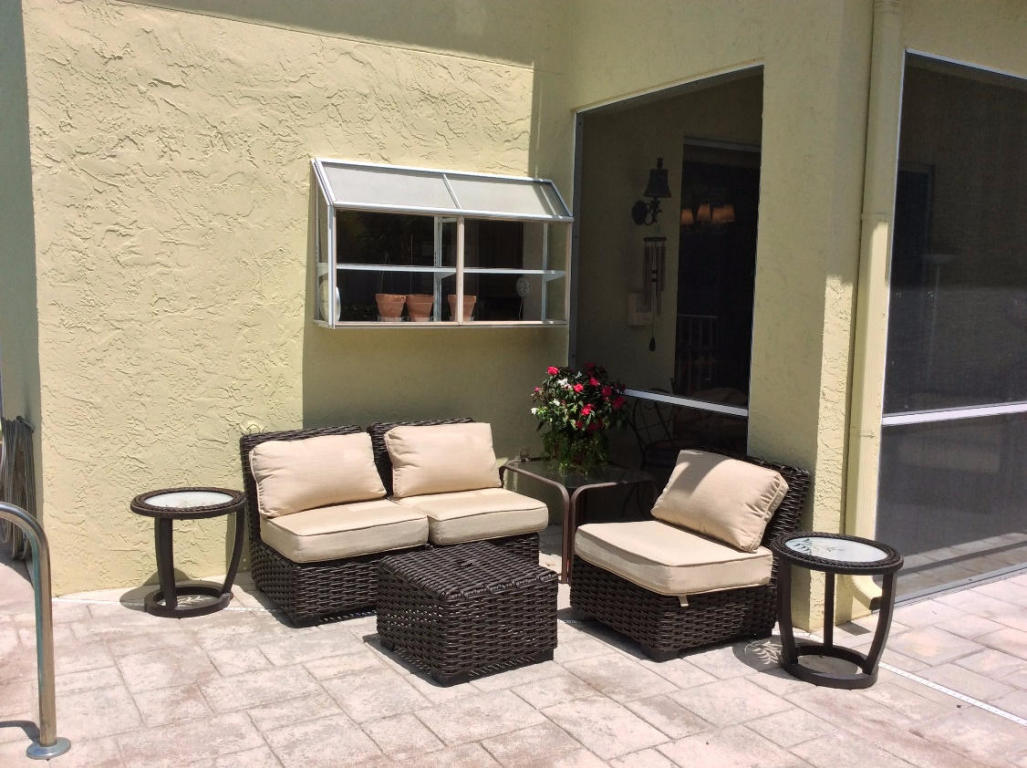 Located in gorgeous Breakers West is this charming, beautifully maintained, 3 bedroom, 2 bath courtyard home. Enter thru the lushly landscaped private walkway into the foyer and living dining area with vaulted ceilings throughout and relaxing views of the outdoors. There are 4 sets of sliding glass doors to lead to the many areas for relaxing or entertaining al fresco. There is a private walled courtyard, a screened porch, and a generously sized patio area. The kitchen has a greenhouse window and a nook overlooking the pool for morning coffee. Many upgrades have happened in 2014 including new roof, new AC, new appliances, and resurfacing the pool, replacing the pool pump, and changing to a salt system.