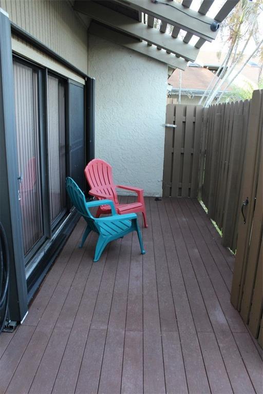 Townhouse in the heart of Davie with easy access to shopping and restaurants. This home has a large composite deck in the front. Upstairs master bedroom is a large loft with laminate flooring. Skylights have room-darkening retractable blinds. Tile throughout the first floor. The kitchen is 2 years old custom made (Amish hand-crafted). Outside in rear of home has pavers. The bathroom was just completely renovated. Aluminum storm shutters on home. Home is move in ready!!!