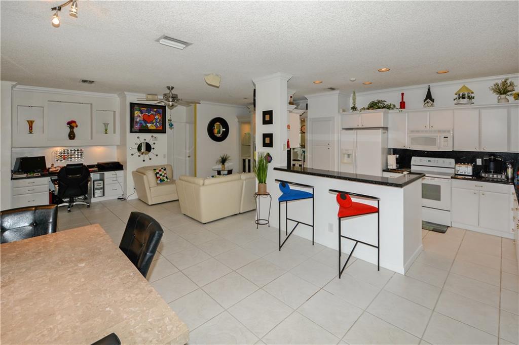 Welcome to this beautiful 2 story 4/2.5 property you can call HOME! Offering a great ambiance, clean, loved and bright. Space you can make your own, kitchen with fabulous white kitchen and black granite counter top, white/white appliances, and tile floors throughout. Owners definitely have updated this home, featuring crown moldings, remodeled bathrooms, laminate floors upstairs, extended screened covered patio, and a large, open green area for your kids to play. Great for family gatherings.
