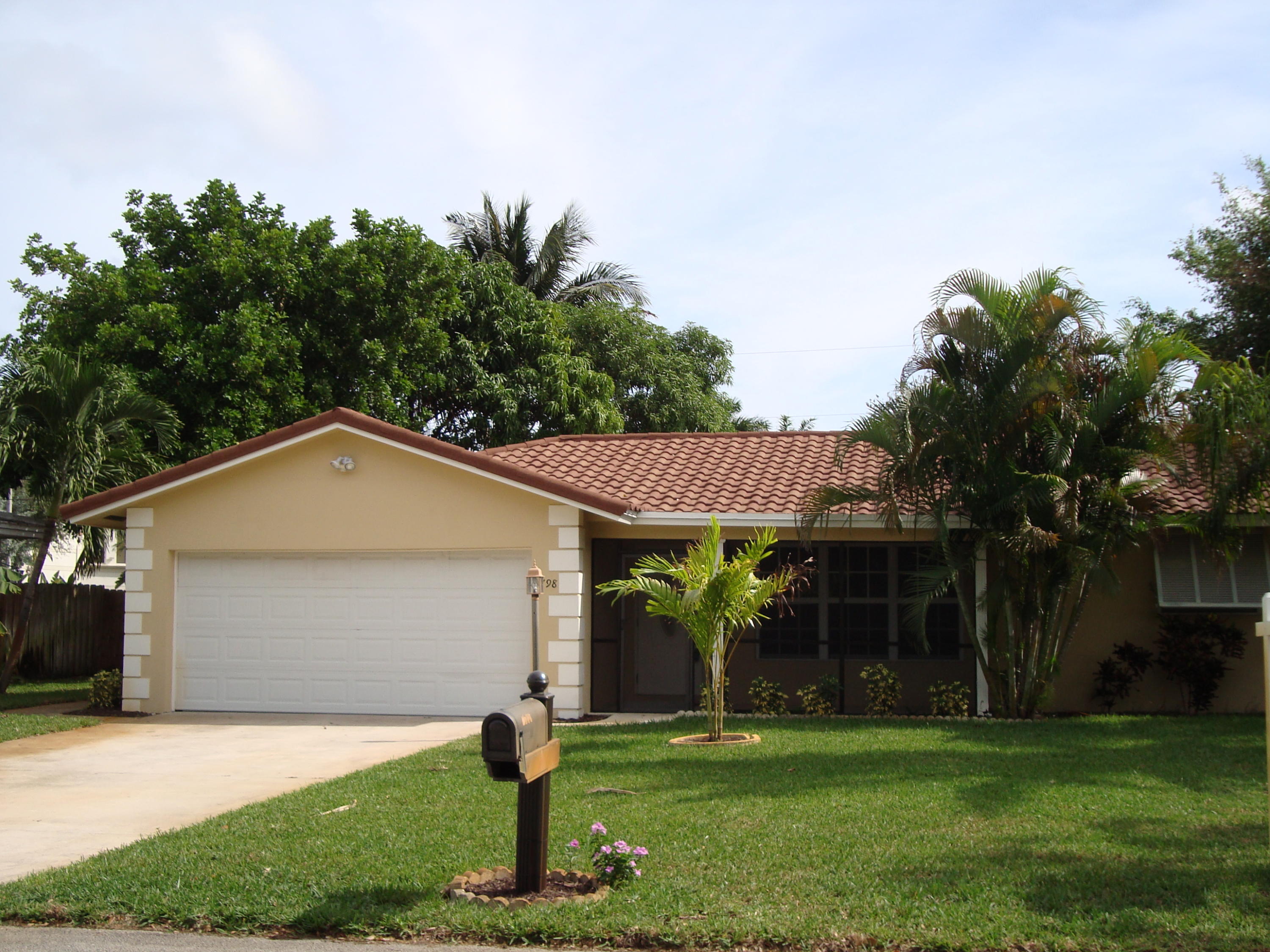 Great house in desirable NE Boca Raton. 4 bedrooms split bedroom plan 2 bath plus family room. Updated kitchen with stainless steel appliances. Beautiful bamboo flooring in all rooms except living room. Large backyard with free form pool. Two car garage with hurricane rated garage door and lots of additional storage. Impact windows all around the house except for slider out to pool. Brand new metal roof June 2016 With 50 year warantee. Newly painted June 2016 inside and outside. Sprinkler system with well. 1.25 miles to the beautiful beaches of Boca Raton. Close to restaurants, stores, concert venue.All information is deemed to be accurate.