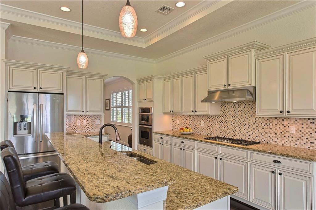 BETTER THAN BUYING NEW! TURNKEY 6 Beds + Loft, 4.5 Baths Waterfront Home On Oversized Lot, Impact Windows & Doors, Gas Range, Open Floor Plan, w/Crown Molding, Plantation Shutters, Wrought Iron Staircase, Spacious Kitchen w/Granite Counters, Stainless Steel Appliances, Mosaic Backsplash, Updated Light Fixtures, Upstairs Loft Perfect For Family, Huge Lot w/Plenty Of Room For Pool! Master Bed On 1st Floor & Another Full Bed & Bath On 1st Floor, Like New! Best Available Lot! Resort Amenities, & A Schools.
