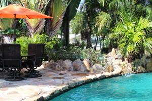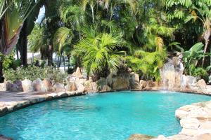 Backup Offers Accepted. Solid Kickout in place. RARE 4 bedroom, ambassador model on the water!Enter through the front door and you will know that you have found a little piece of paradise. Step inside and you can see the grand scheme of the spacious living room with amazing view of not one but three pools, lush landscape, 4 water falls, 65 ft dock and waterway. True cooks kitchen boasts large cabinets, double ovens, cook top, side by side refrigerator/freezer, large sink with disposal overlooking the stunning back yard.Ready to enjoy your meal? Dining can be informal in the large eating area of the kitchen that seats 10 comfortably or in the large dining room that can easily accommodate a table for 10. Renovated to perfection, great for hosting large groups or intimate gatherings!