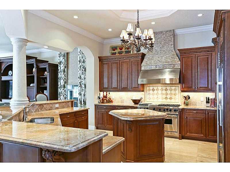 Stunning Custom Estate 6 Beds 6.5 Baths Plus Office & Media Room w/Beautiful Waterfront & Golf Views. Designer Kitchen/Butler Pantry w/42" Wood/Glass Cabs, Granite/Tumble Stone, Viking 6 Head Gas Stove w/Double Ovens, Sub-Zero Refrig, Bosh Dishwsh & Prep Island. Master Suite w/ Wet Bar, Sitting Area, Coffered Ceilings, Walk-ins, Marble Bathroom w/Jacuzzi, Bidet, Shower w/Multiple Heads/Jets. Impact Glass, Marble/Wood Floors, Pool w/Spa, Sun Shelf, & Summer Kitchen. Detailed List Of Upgrades Attached.