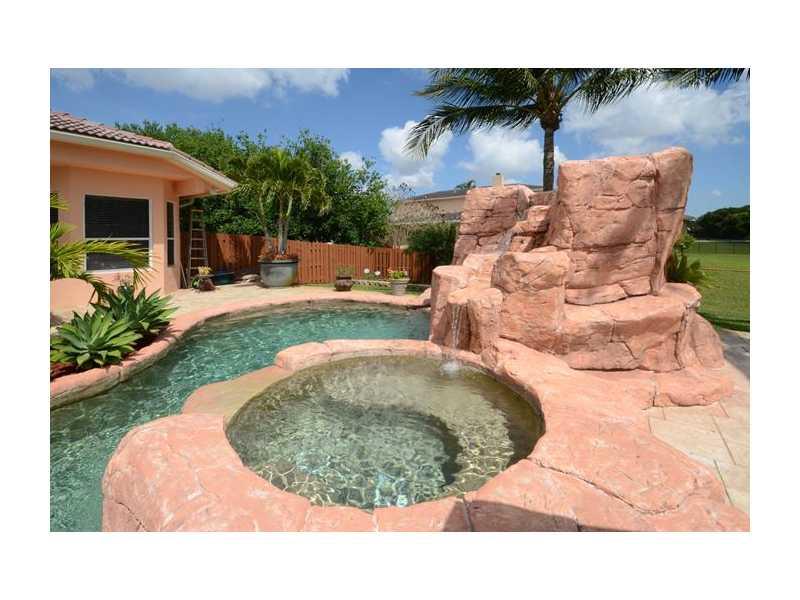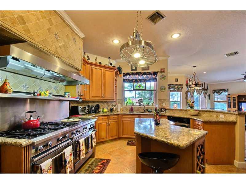 Located in the heart of Davie, this majestic acre lot features a private lagoon style pool & spa w/ custom grotto, 12ft waterfall, & summer kitchen.This 5bed/4bath ranch style home is equipped w/ a gourmet kitchen including granite tops,wood cabinets, com mercial grade gas range & double oven.In-law quarters w/ kitchenette & private entry. Wood, marble & tile flooring.Crown molding throughout. 3 car garage w/ work station.Wireless security system, heat recovery system, & backup generator. Feels like home!!