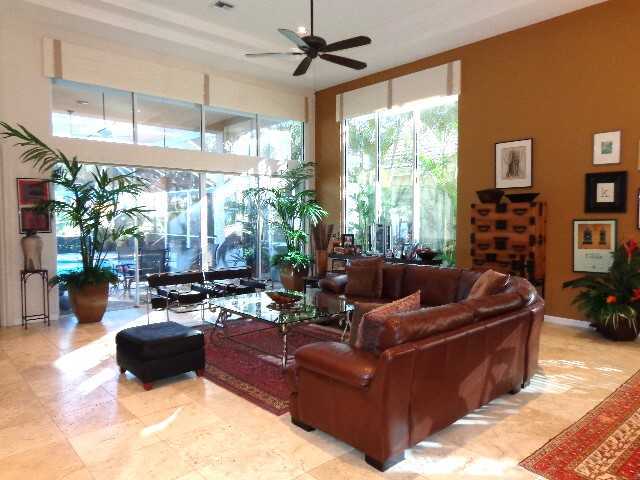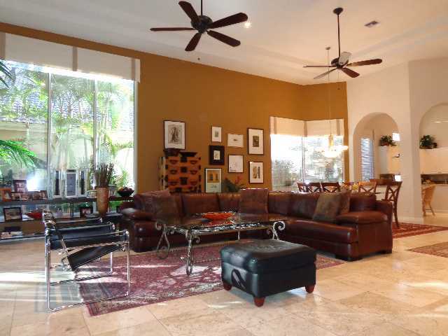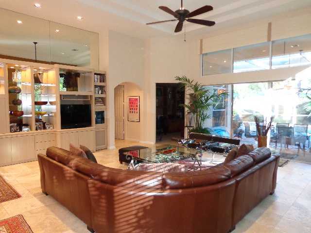 Breathtaking ''like new'' great room home w/ magnificent golf course views! Double etched glass front doors lead you to beautiful Saturnia marble floors. Great room features custom built-in entertainment center w/ pull-out bar area & more. Dining room area in great room. Newer chandeliers & fans.New LED recessed lighting. Fabulous den w/ custom built-ins, boxed ceiling, & golf views.Large master bedroom features double coffered ceiling, plantation shutters, TV on wall, 2 large walk-n closets,& door to patio.Master bath features huge marble shower, custom mirrors, marble floors & counters. 2 zone a/c. 2 additional guest bedrooms & baths. Large gourmet kitchen features max cabinets, granite counters, tile backsplash, extra large s/s sink, refrigerator w/c... (see supplement for full rem