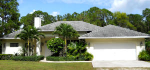 PEACE, TRANQUILITY, SPACE...Everything to love about this Royal Palm Beach, Florida contemporary ranch style home. This beautiful home is a 4/3 CBS with a 2 Car garage under 2,377 sq ft of CENTRAL A/C grossing over 3,297 total sq ft! Featuring soaring Ceilings and large rooms everywhere, tropical landscaped 1.14 acre yard for family entertainment and fully fenced for pets. Enjoy a massive Master bath using a walk through shower or roman tub. Tile floors, real Wood floors, Travertine and 2 rooms with NEW ca