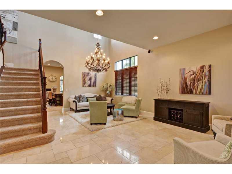 STUNNING HIGHLY UPGRADED 5 BEDRMS+LOFT+HTD POOL&SPA*PIE SHAPED LOT BACKING TO 3 FOUNTAINS! Freshly painted 2014*Solid Mahogany Front Door*IMPACT GLASS WINDOWS&DOORS*French Pattern MARBLE FLOORS*Custom window treatments*Island Kitchen/48" SUBZERO w/Ice/Wat er in door+2 WOLF Wall Ovens/ Micro/Cooktop+Integrated DW, Central Vac w/kitchen sweepout*Breakfast Rm*Built-in Ent Ctr IN FAMILY RM*MASTER & 2nd Bdrm on 1st*MBath w/Sep vanities+Spa tub*COVERED PATIO*Marble Deck & Fully Fenced*Alarm*Intercom*VIRTUAL TOUR