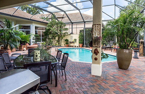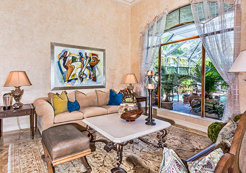 If you are looking for a move-in perfect, stunning, and upgraded 3BR/4BA+Den Ibis home, this is it. Fabulous high-gloss marble floors set on the diagonal, open floor plan with soaring ceilings, extensive moldings, faux finishes, designer light fixtures and window treatments create a luxurious feel from the moment you enter. This home boasts a full screened enclosure housing a heated pool and summer kitchen. There is a whole-house 40KW generator and 2 Lennox AC units (3 years old). There is a whole-house water softener and filtration system, accordian hurricane shutters, granite kitchen with tumbled marble backsplash and stainless appliances. Built-in units in the family room, the master bedroom, and guest bedroom. The master bath offers a spa-shower and a granite-topped tub.