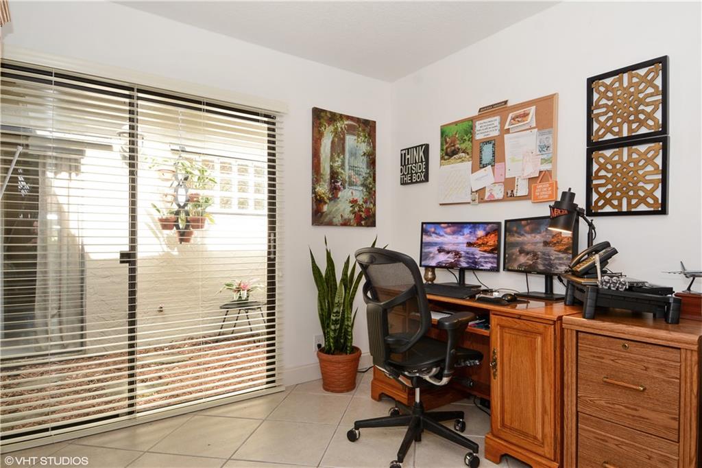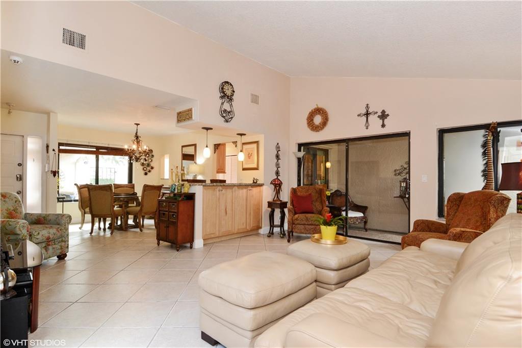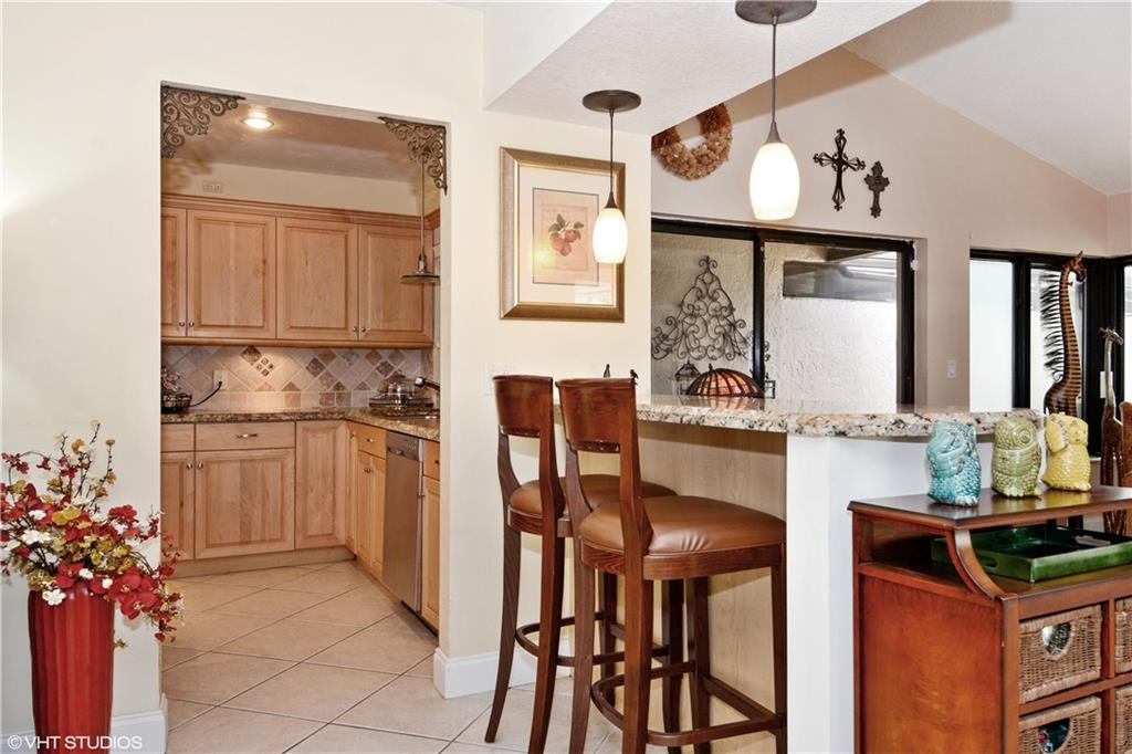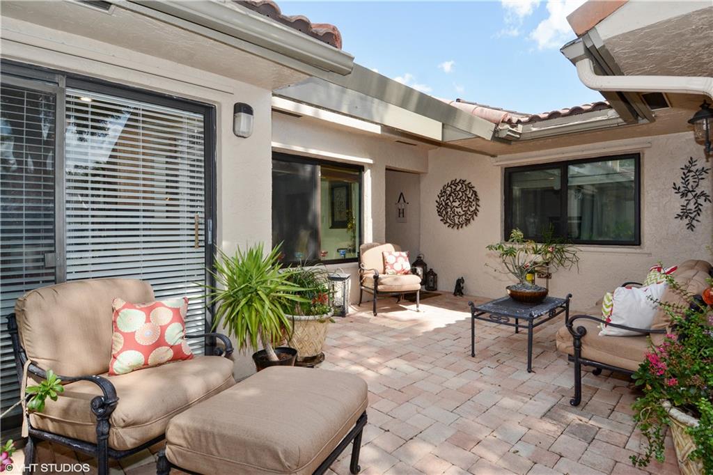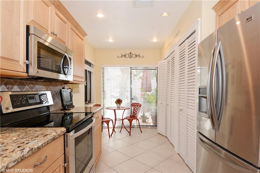 Remodeled Villa! Great upgrades throughout: Kitchen (wood cabinets, granite counter tops, S/S appliances, pantry organizers), Bathrooms done too! Ceramic tile throughout, newer A/C w/ UV blue light air purifier, popcorn ceiling removed, newer HWT. '07 Roof, '13 Impact Windows, slider have shutters, 15 W/D, Two Patios: front open, back screened & Atrium! Low HOA incl lawn, community pool area in Patio Village & Bonaventure club: gym, tennis, etc...centrally located! Home is in top condition! Dog on site!