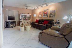 TRUE 4 BEDROOM HOME IN GREAT LOCATION. 2.5 BATHS. GREAT CORNER LOT IN SMALL BOCA DEL MAR COMMUNITY. MOVE IN CONDITION. LARGE TILE THROUGHOUT LIVING AREA AND 4TH BEDROOM. NEW CARPET IN OTHER THREE BEDROOMS. FAMILY ROOM OFF KITCHEN OVERLOOKS OVERSIZED COVERED AND SCREENED PATIO. 2 CAR GARAGE WITH LARGE DRIVE ALLOWS FOR PLENTY OF PARKING. 9 CEILING FANS.TILE ROOF, ACCORDIAN HURRICANE PROTECTION. AC NEW IN 2010. BUILT IN SPA. SPA IS NOT HEATED. CENTRAL VAC AND INTERCOM NOT WARRANTED.