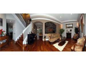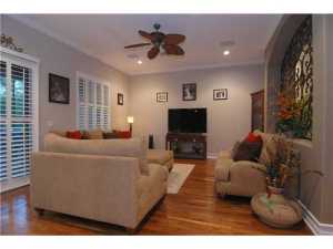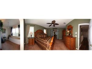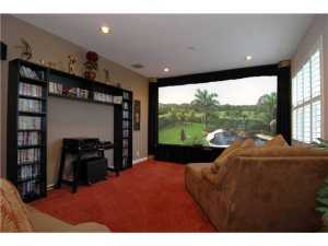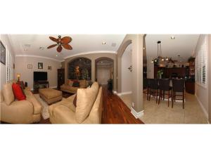 Fabulous 5 Br/3 Ba with loft that is actually a theatre room. Gas heated pool with salt system/ spa and lagoon waterfall. Lake view w/private back yard. Oversized lot. Screened lanai. Plantation shutters, wet bar on patio with overhang, gourmet kitchen with granite and stainless appliances,upgraded fire alarm, upsairs office can be closed off,convenient dowstairs guest bedroom,two zone AC,3 car garage with one used as room can be converted back. Gas stove. Home has hurricane shutters. Pleas note: WASHER & DRYER NOT INCLUDED IN SALE.