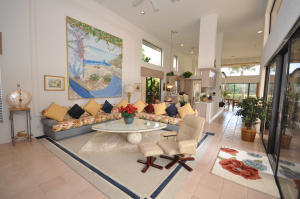 Gorgeous courtyard home with 2 car, plus golf cart garage. 3 Bedrooms, plus office/4th bedroom. Has lake and golf views, circular driveway. Can include Golf & Tennis.