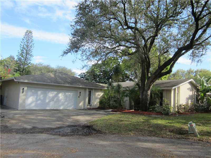 Beautiful family home with lots of space! Open floor plan concept with large updated eat-in kitchen w/double stove tops in center island. Step down family room with built-in book cases. Extra large storage room could be possible fourth bedroom. Dark ro om/half bath. Huge laundry room with extra storage space. Over-sized garage. Large sparkling pool with tropical fruit plants. Well maintained and close to I-95 and the turnpike. A true "must see!"