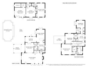 Located in the Lake block of Historic El Cid! This delightfully renovated 4BR/3.5BA Spanish Mediterranean home includes a private heated pool and a large 2BR/2BA guest house plus a gym. The sun drenched living room spans across the front of the home with a fireplace on one end and a hand built bookcase on the other. A Butler's pantry separates the large dining room from the gourmet kitchen complete with stainless steel appliances. The gracious master suite features a large walk-in closet, a lovely marble bath and a private balcony overlooking the lushly landscaped property. The home is practically hidden behind soaring lush landscaping with iron/cypress gates and has a Porte' Cochere over the decorative driveway.