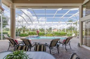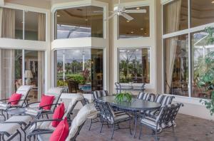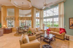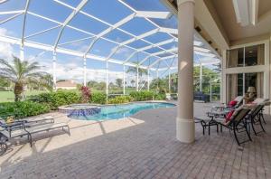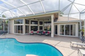 SET IN A TRANQUIL AND PICTURESQUE GATED COMMUNITY, THIS HOME WILL WRAP ITS ARMS AROUND YOU WITH A BEAUTUFUL GLASS DOOR ENTRY, FABULOUS FLOOR PLAN, VOLUME CEILINGS, SATURNIA FLOORS, AND A LOVELY WET BAR WITH GRANITE COUNTER TOP. THE KITCHEN IS BEAUTIFULLY UPDATED WITH NEW STAINLESS STEEL APPLIANCES, GRANITE COUNTERTOPS, DESK AREA AND ENDLESS WOOD CABINETS FOR MAXIMUM STORAGE. THERE ARE PLENTY OF RICH APPOINTMENTS WITH CROWN MOLDING THROUGHOUT AS WELL AS LIGHTED NICHES AND COFFERED CEILINGS. PERFECT FOR ENTERTAINING, THE BACKYARD FEATRUES A VERY LARGE SCREENED POOL AND SPA WITH A GENEROUS OVERHANG AND LAUNCHING VIEWS OF THE LEGEND GOLF COURSE. THREE NICKLAUS FAMILY DESIGNED GOLF COURSES, TENNIS, FITNESS, DINING, AND A FULL CALENDAR OF SOCIAL EVENTS MAKE THIS ONE A CLEAR WINNER!