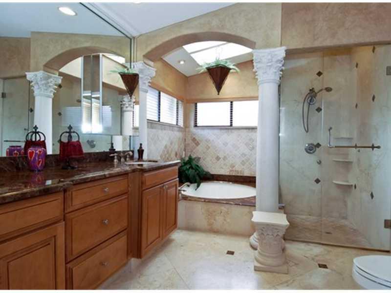 Sprawling home on private interior lot in secluded estate community, no assoc. fee. Incredible updates & upgrades thru-out. Newer roof, accordion hurricane shutters, generator system. Huge remodeled kitchen & baths, granite, stainless, huge breakfast room , home theater, triple split bedroom floor plan, luxurious master suite, dual sided fireplace, cathedral & vault ceilings, porcelain tile floors, hi hats, fans, etc! Enormous backyard, 2 authentic cheekee huts, raised waterfall spa & saltwater pool.