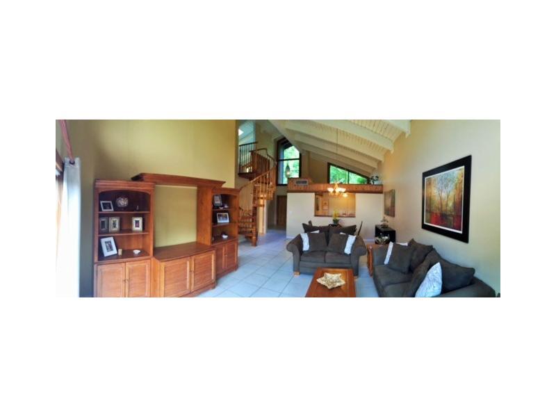 Rarely available beautifuly maintained chalet style home in the exclusive community of Jacaranda. Souring vaulted ceilings with large windows provide plenty of light. The exposed wood ceilings add to the character and charm. HUGE master bedroom with walk -in closet, Tile throughout the living area, Updated kitchen appliances. third bedroom is an over sized open loft that can be enclosed. This single family attached home will not last long in todays market! Call today for a private showing.