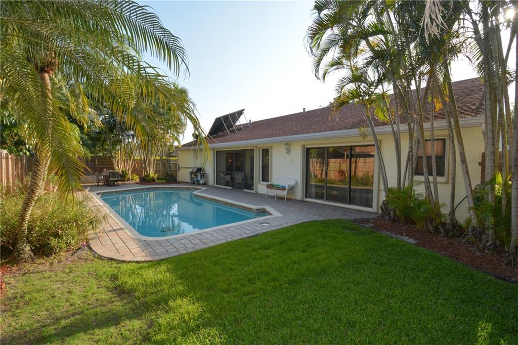 BEAUTIFUL & IMMACULATE HOME HAS A REMODELED KITCHEN (GRANITE COUNTER-TOPS, S/S APPLIANCES, HUGE PANTRY), BEAUTIFULLY RE-DONE BATHROOMS, HURRICANE IMPACT WINDOWS AND SLIDING SHUTTERS!, FRENCH DOORS, SCREENED-IN PATIO AREA, FULLY FENCED-IN WITH YARD WITH LAWN AREA FOR PETS AND KIDS... PLUS!!! CENTRAL VACS, SOLAR PANELS, NEWER ROOF, LAP-STYLE POOL, PAVER DRIVEWAY AND PATIOS, STONE FRONT ELEVATION AND SO MUCH MORE!! NO HOA TO CONTEND WITH ! FURNISHINGS MAY BE AVAILABLE TOO!! A "MUST SEE" !