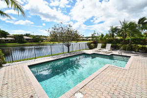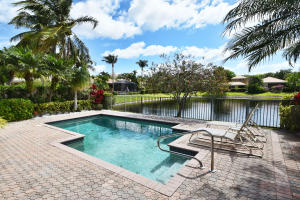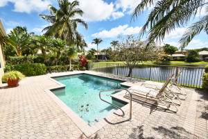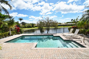 Wide Lake Vistas from one story pool home. Heated pool. New air cond. New pool heater. outfited closets. 2 bed plus conv den. 2 1/2 baths. Upgraded tile. Outfitted walk in closets. Private cul-de-sac street.