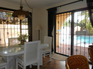 Spacious and appealing 3 bedroom plus loft courtyard style home. Enter property through gate and through courtyard with inviting pool. 2 story home with soaring ceilings on main level. Fireplace. Good sized master bedroom on ground floor. 2 additional bedrooms upstairs plus open loft. Powder room downstairs. Main level has large living/dining space and open kitchen to breakfast area. Dual zone AC. Pool recently resurfaced. Convenient central location in Boca del Mar area. Tax roll indicates 2010 AC but seems much larger. No rentals allowed in community.