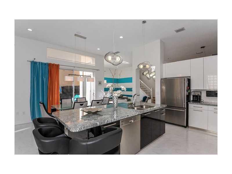 West Lake contemporary masterpiece. Beautifully renovated 4BR/2.5BA Pool home on lovely corner lot facing wide lake views. Foyer entrance into spacious open tiled living areas. White kitchen cabinetry features stainless steel appliances & granite counter tops overlooking pool patio. Upstairs loft family room with wood floors and double door entry into tranquil master bedroom & well-appointed master bath. Three additional bedrooms & bathroom complete the upstairs retreat area. Gated Community & amenities.