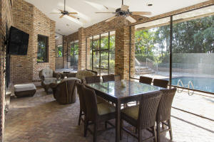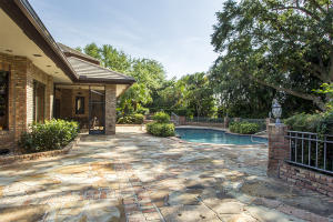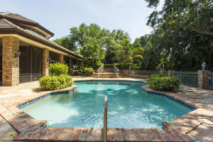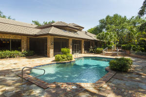 Nestled among mature oaks and on nearly one full acre, this custom-built, 1-story residence features 5 bedrooms, 5 full and 2 half baths, formal living and dining rooms, spacious sun-filled office, fabulous theatre room, and the ultimate game room with full bar and double-sided fireplace. French country-style kitchen with granite counter tops and sunny breakfast room. High ceilings and French doors with transoms throughout the home and sliding glass doors out to the huge screened patio area. The master suite has a new Zen-like spa bath, dual vanities and glass enclosed shower. This sprawling home has 8,224 SF of air-conditioned living space, 4-zone A/C, new roof, beautiful in-ground pool with flagstone and brick paver sun deck, separate cabana bath, 1/2 basketball court and a summer kitch