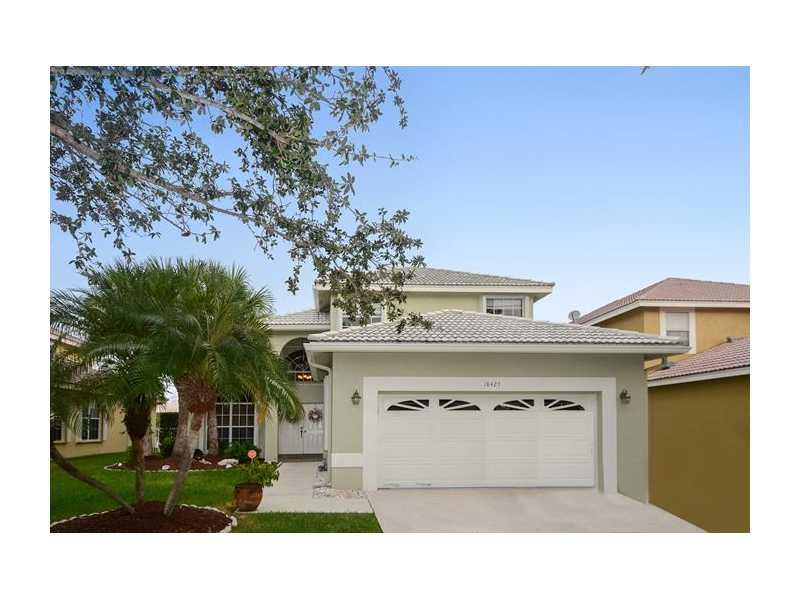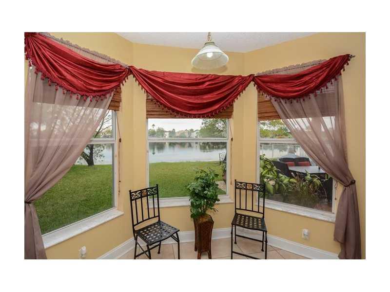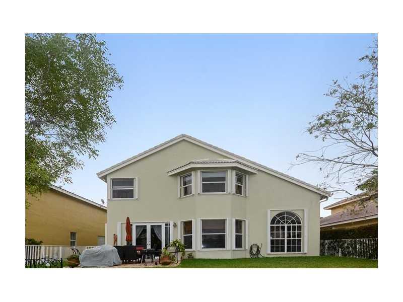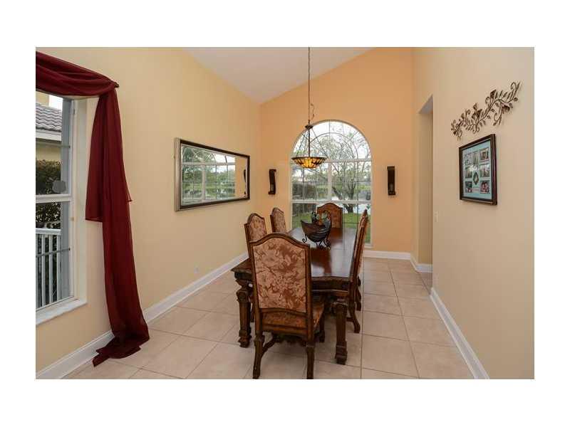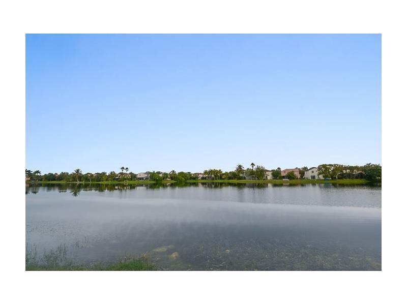 Come home to dazzling sunsets! Exceptional 4/3 two story home with pristine water views. Private fenced backyard. Custom kitchen w/SS appliances, cherry cabinets & granite counters. A Chef's delight w/ 3 ovens. Eat-in-kitchen opens to spacious family room . Formal living & dining rooms, soaring ceilings, porcelain tile,laminate wood staircase. One bedroom & bath downstairs used as den. Luxurious Master w/roman tub, shower,walk-in-closet & water view. Exterior just painted. Accordian Shutters,Pavered patio.