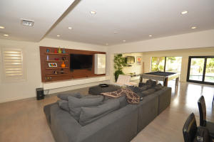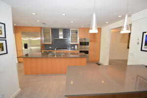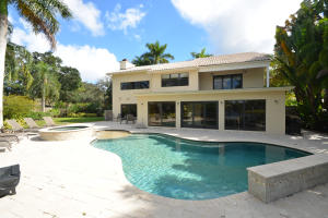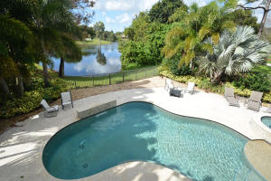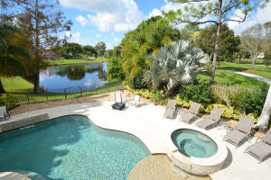 Fabulous lake front home sited on .35 acre. Long Lake views from living room, kitchen, family room, master suite, pool and patio. Completely redone and updated. Gourmet kitchen featuring GE Monogram appliances, gas range, double ovens, custom wood cabinets and granite counters. Lge family room adjoins kitchen with stunning built-in wall units. Gorgeous free form heated pool w/decor lighting and spa. 3 bdrms up include mstr suite w/balcony, huge walk-in closets, luxurious bath with Jacuzzi tub, steam shower, granite counters and custom fixtures. Guest or 4th bdrm/bath are located down. This ''must see'' home boasts custom flooring in all living area, designer lighting, hurricane impact glass on doors and windows. 3 zone air conditioning, many more custom design features throughout