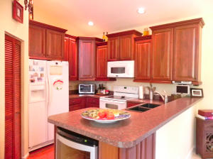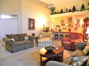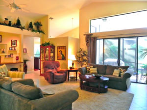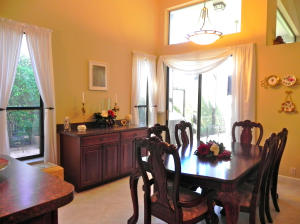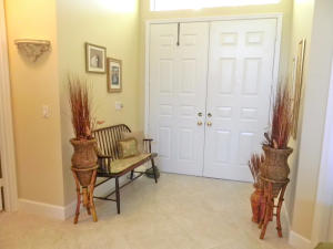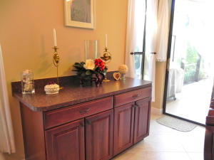 Picture perfect and move-in ready! Wonderfully decorated, with many updated features - beautifully upgraded Kitchen with wood cabinets, newer 22'' tile laid on the diagonal and upgraded 5'' baseboard. Split bedroom floorplan - private Master Suite with bright and beautiful bathroom, his/hers closets. Lovely touches and architectural details throughout the home. 8 Ft sliding glass doors and clerestory windows. Located on a private interior lot. Newer A/C and hot water heater. Guard gated neighborhood has beautiful pool, tennis court and playground. Lawn maintenance included in HOA dues. Kitchen features include a walk in pantry, high-hat lighting, brand new dishwasher and disposal, newer wood cabinets, wine refrigerator and charming breakfast area opening out to paver patio.