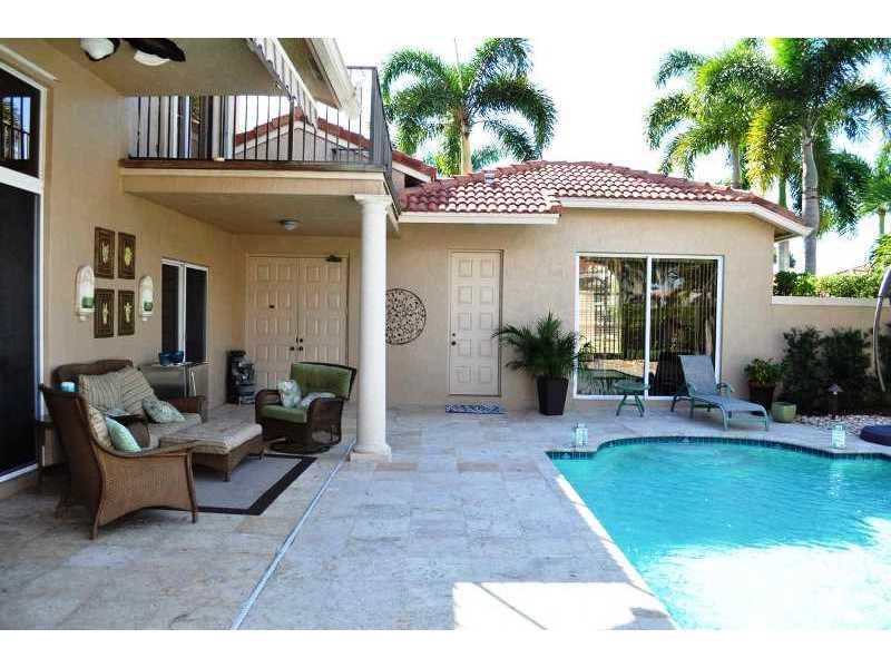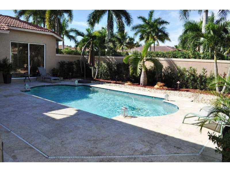Spacious 7 bedroom 5 full bath pool home nestled in the heart of Weston Hills CC. This residence offers several notable features including separate guest house, Remodeled Kitchen with sleek appliances, expansive ceiling heights, real wood floors, Sitting area in Master Bedroom, Crown Molding, Two Patios to entertain family and guests, Brick Pavered circular driveway, accordion hurricane shutters, 2 1/2 garage, and more. The home sits on a lush lot that is well manicured and fully fenced.