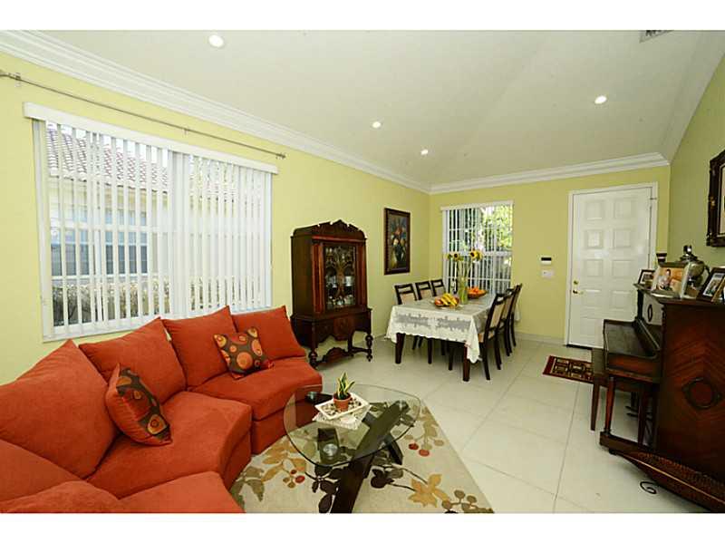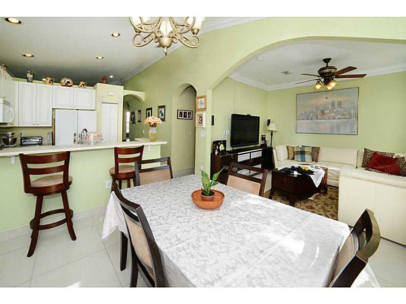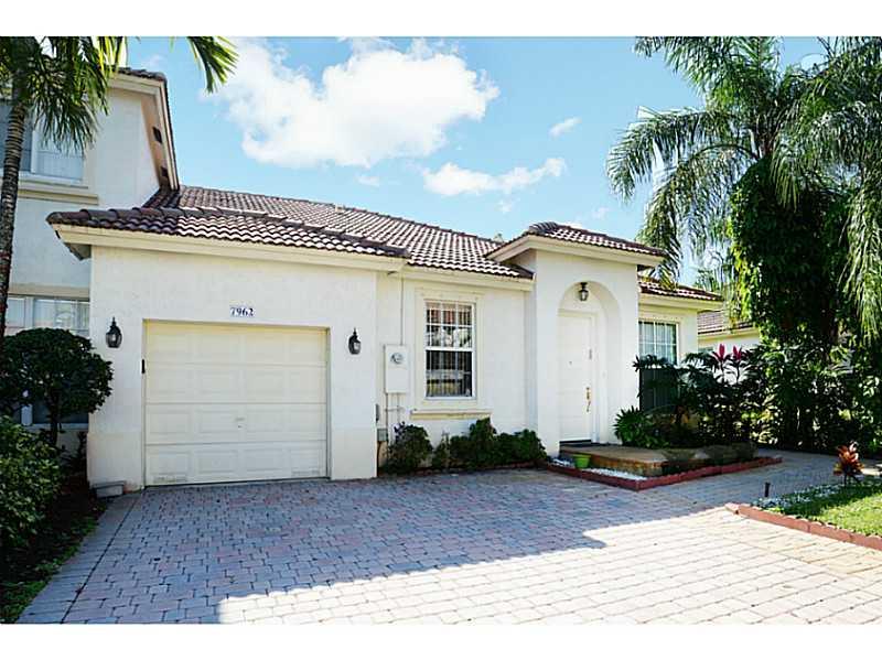 Move in ready townhouse in exclusive Walnut Creek in Pembroke Pines. 3rd bedroom was converted to family room. 2 full baths. 24" Porcelain tile throughout, crown molding, vertical blinds, highhat lighting, utility room, newly painted. Plenty of natural light with this corner unit. Garage converted to additional room & can be converted back easily. Guard gated community with resort style amenities. Club house, pool, hot tub, tennis, fitness center, playground. Furniture available for purchase.