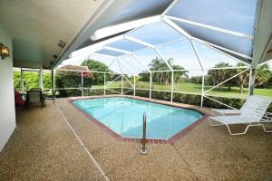 BEAUTIFULLY MAINTAINED, UPDATED KITCHEN, GRANITE COUNTER TOPS, ALL POPCORN REMOVED, GREAT GOLF VIEW. OPEN AND AIRY GREAT ROOM. NEW AC & GARAGE DOOR, WATER HEATER NEWER.TILED THROUGHOUT, 2 BEDROOMS WITH CARPET. PLANTATION SHUTTERS IN MASTER AND BEDROOM. LARGE MASTER WALK IN CLOSET. GREAT ENTERTAINING POOL AREA WITH LARGE COVERED PATIO & PASS THRU FROM KITCHEN. HEATED POOL! ROOF WAS PERMA SEALED. DINING ROOM CHANDELIER DOES NOT CONVEY. BRING YOUR FUSSIEST BUYER'S IMMACULATE. NO MANDATORY MEMBERSHIP TO COUNTRY CLUBInformation contained herein is deemed reliable, but subject to error, omission or changes, without notice. All sizes are approximate