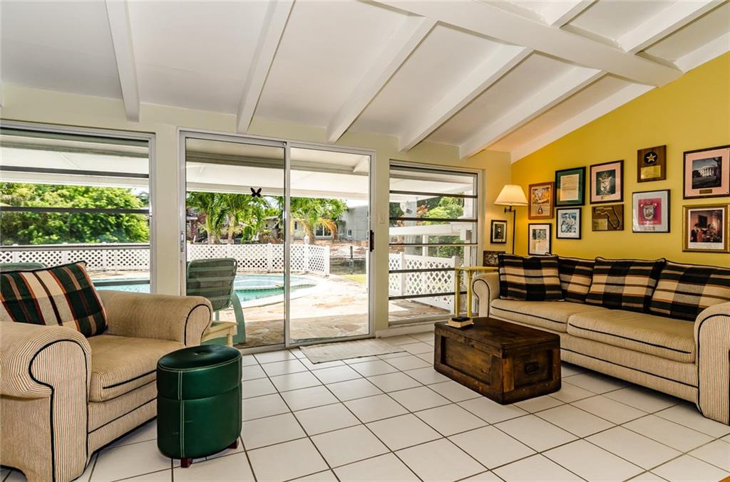 Attention Boaters! Dock your yacht behind this sprawling tri-level pool home. Entry level master bedroom W/sitting area looks out on pool & waterfront, Ensuite master bathroom. Living areas galore! Living room & family room. Two large bedrooms & bath upstairs with deck. Downstairs kitchen & dining room open to screened patio. Raised pool and spa with flagstone deck & covered patio. Accordion shutters, some newer windows. Dual air conditioners. Private dock W/water and power. The perfect safe harbor!