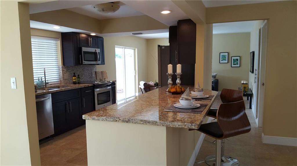Move right in to this fully remodeled gem! 3 bed 2 bath with $90,000 remodel.Brand new roof, hurricane impact windows/sliding doors and garage door. Brand new 36" espresso kitchen, stainless appliances,granite counters,porcelain floors, new vanities, frameless shower doors, 2" blinds, marble pool deck, huge dock, landscaping ,open floorplan with separate living & family room. Beautiful pool view overlooking the water from most rooms.
