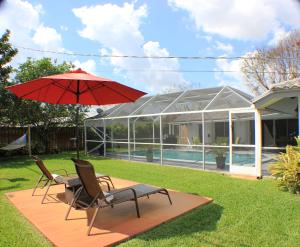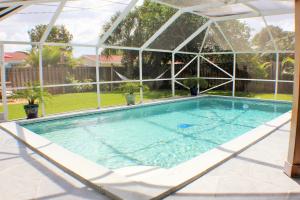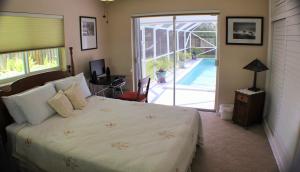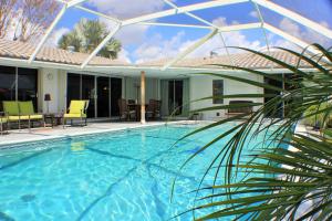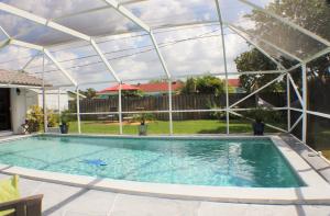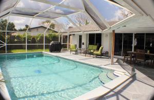 Beautifully landscaped turnkey pool home with thousands of dollars in upgrades! PGT Storm windows, sliding accordion shutters, updated kitchen with light oak cabinets and lovely copper canyon granite counter-tops, stainless steel whirlpool gold appliances, Bose sound system throughout home including pool deck, plantation closet doors, Hunter Douglas blinds throughout.Every bedroom has a sliding door out to the sparkling pool and sun deck, this home has device control center for a wire free decoration, laundry room with pantry, bathrooms freshly upgraded with neutral marble and tile, refreshing outdoor shower with cedar surround, lush landscaped garden with beautiful 15 X 30 pool, pool screen, sprinkler system, sundeck, shed, RV/ Boat hookup, brand new exterior AC Unit, new pool pump an