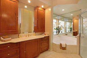 Outstanding 3 bedroom, 2.5 bath home on the 14th fairway of Boca Country Club. Beautiful over sized family room. House is totally updated. Very large patio on golf course. Master suite downstairs. 2 car garage. Newer roof, air conditioner and kitchen. Plantation shutters though out plus hurricane shutters.( Excluding kitchen chandelier & generator) Lovely satellite pool. Guard gated community. Close to I95 and beaches. Option membership to join club, if desired. Excellent school system. HOUSE IS GREAT!!! CALL FOR APPOINTMENT.