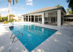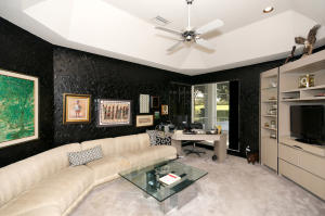 Highly Motivated Seller! A Custom Contemporary Estate Home. 3 bedrooms 4 1/2 baths, all en-suite, plus a large office/guest room with built-ins. The luxurious Master bedroom creates a private oasis including 2 large walk in closets, room for a sitting area and a master bathroom divided into 2 private areas with its own water closets. The master Bedroom, Living Room and Open Kitchen/Family Room over look the pool/patio area with expansive golf vistas creating a magnificent setting. This home is perfect for casual living, raising a family or entertaining and in walking distance to the Clubhouse Bocaire Country Club provides one up two down policy and invites parents, children and grandchildren of resident ,members use of the facilities at no additional charge. This is a home not to be missed