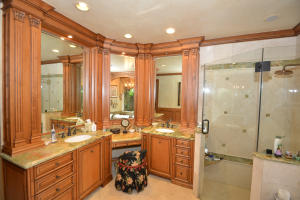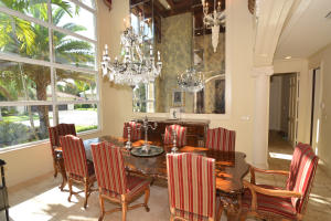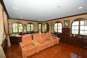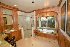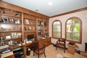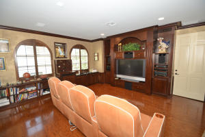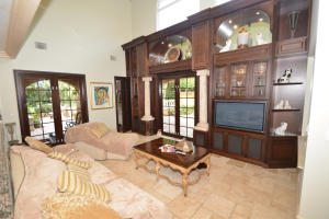 Located on a private oversized lot of almost a half-acre with beautiful gardens, this magnificent estate of over 4800 sf under air with 5 bedrooms plus a large media room/office & oversized 3-car garage offers fine finishes and exquisite craftsmanship featuring volume ceilings with detailed accents in wood & crown moldings; Jerusalem stone & hardwood floors; decorative columns & wall moldings; elegant custom built-in offices & entertainment centers; beautiful custom window treatments & plantation shutters; an enormous gourmet island kitchen with French country antique ivory cabinetry, granite countertops, stainless steel appliances, wine cooler & lovely breakfast nook;updated Master & secondary bathrooms; custom closet design; newer air conditioning; newer washer & dryer;impact windows